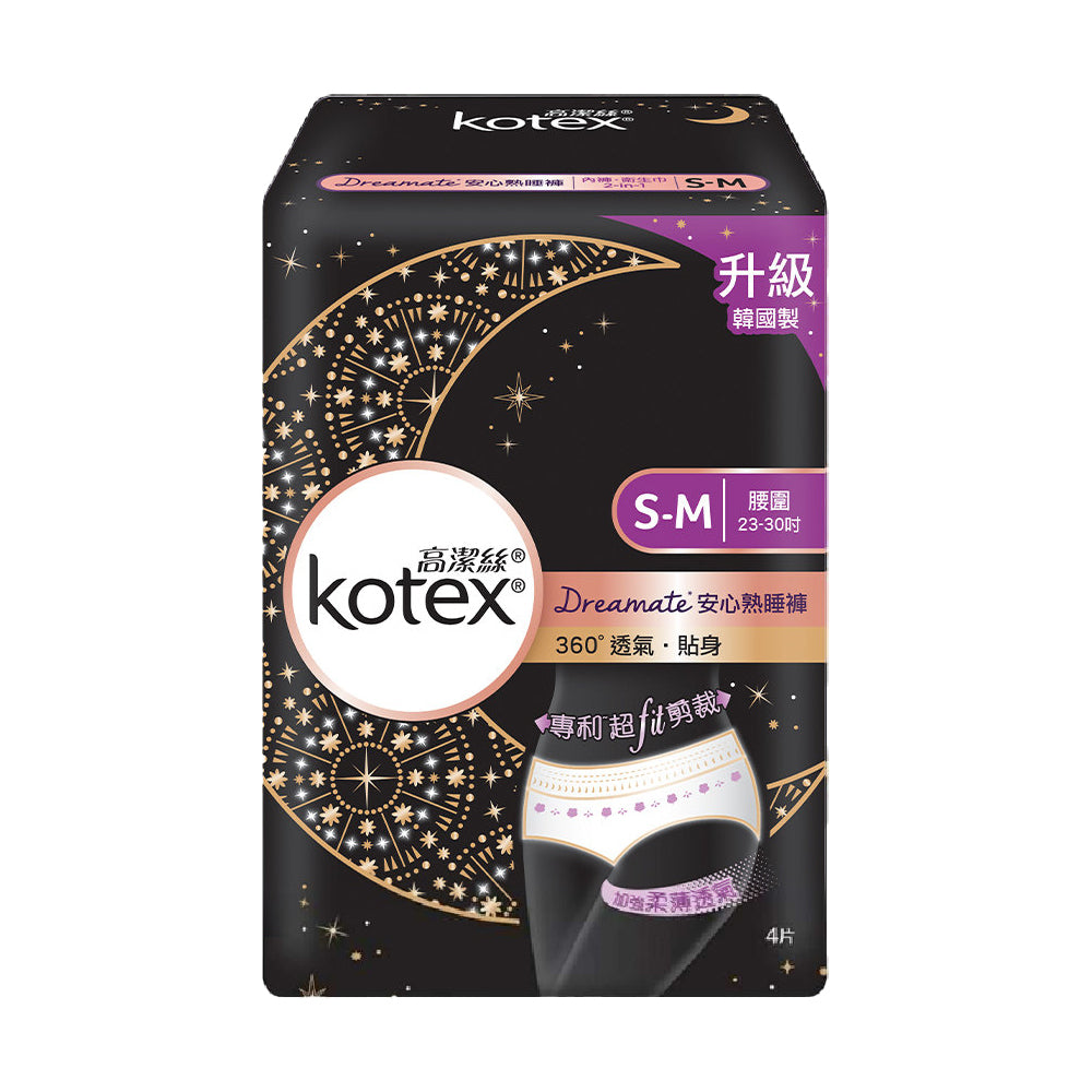 高潔絲 Kotex Dreamate安心熟睡褲 360˚防漏貼身剪裁 韓國製 (小-中碼/4片)